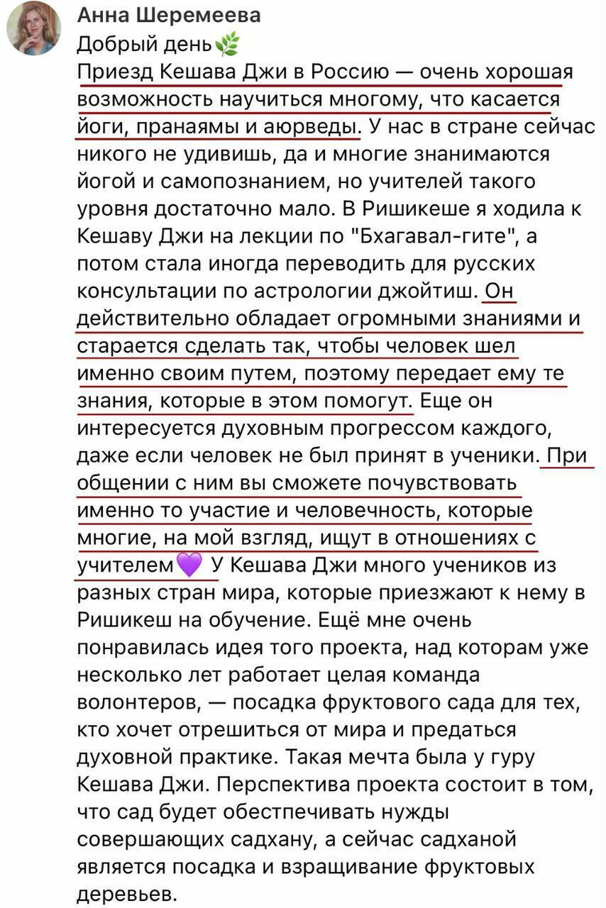 Отзывы учеников Мастера Кешава Дева: