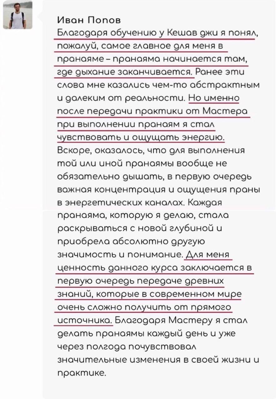 И получите возможность попасть в чат-комьюнити учеников Мастера Кешва Дева